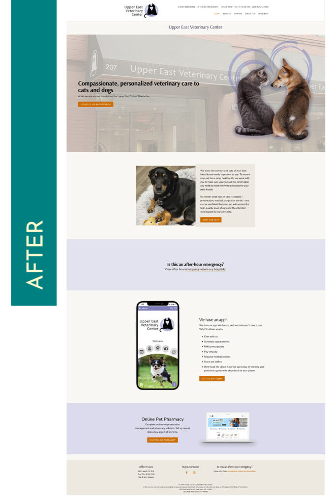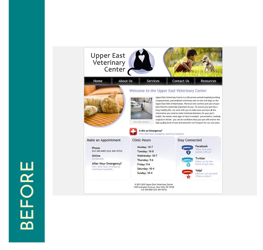 The coolest part about working with Upper East Vet? After 12 years, I got to redesign my own work. I designed the client’s original website so it was fascinating to see how much both the web and I had changed over the years.